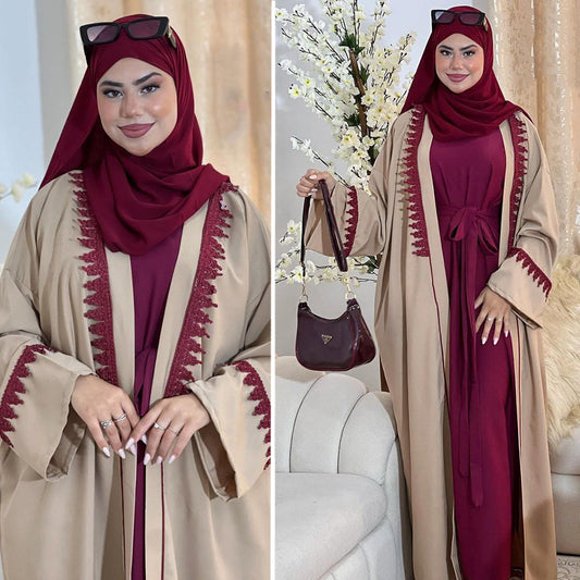 ( REF 14 ) عباية كريب برادا راقية مطروزة بالأحجار