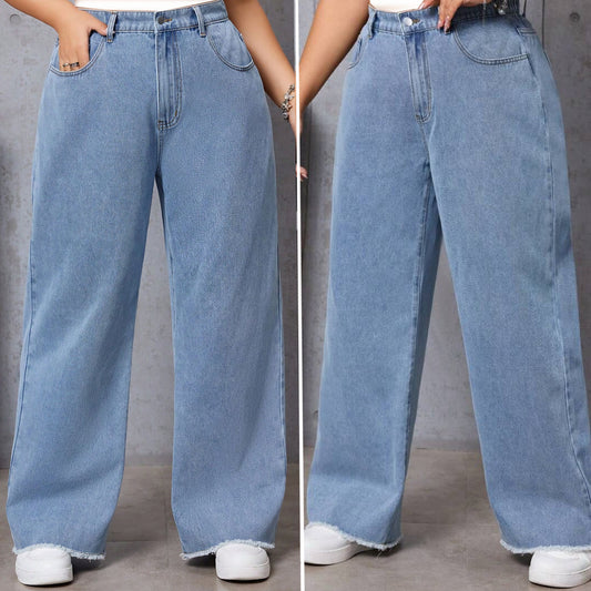 ( REF 08 ) سروال جينز واسع بخط في الوسط