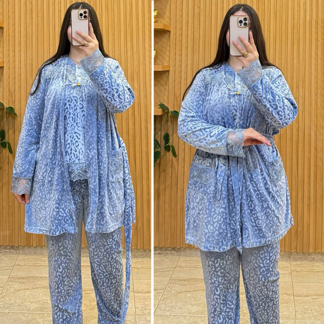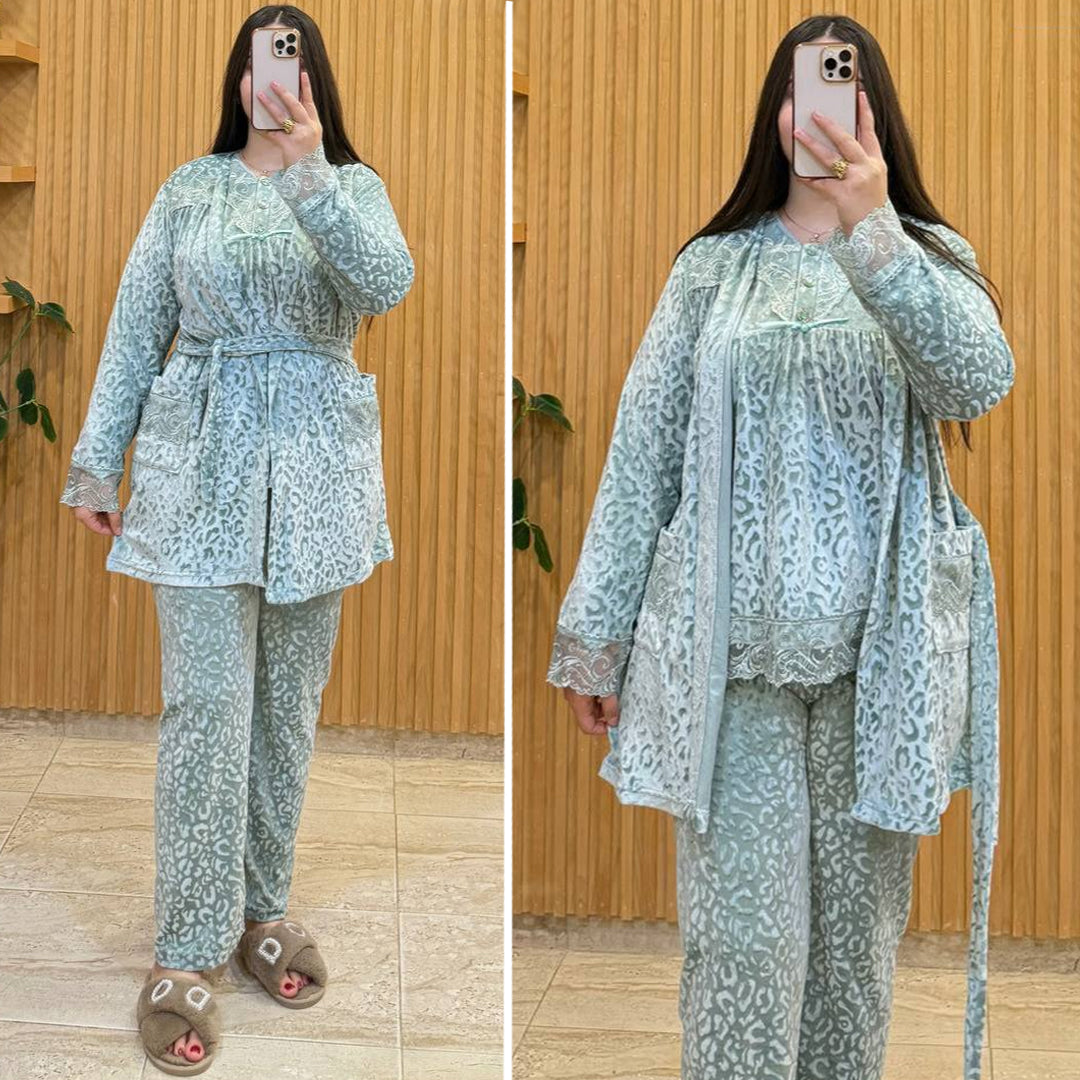 بيجامة نوم نسائية فاخرة من ثوب الموبرة – 3 قطع